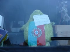 Dieses quieeetsch gelbe Fussel-Teil mit der Portugal Flagge vor´m Bauch in der Frontscheibe erregt im Normalfall das größte Unverständis: bei meinem Micha. Er möchte dieses gelbe DING gerne stumpf unter´s Vorderrad legen und kurz mal eben nur ein bischen Gas geben. Mal gucken was da so passiert.....