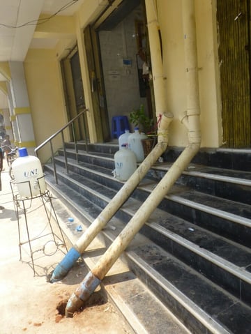 Vor den Hauseingängen dröhnen dazu riesige Not-Strom Aggregate. Der städtische Strom fällt öfter aus. Daneben wiederum stehen große Wassertonnen gefüllt mit dem schlimmsten Dreck-Wasser, in dem sich ganze Familien abends auf dem Bürgersteig waschen....