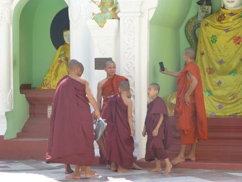 ...auch die jungen Mönche aus Myanmar verzichten nicht auf ihr Smartphone.