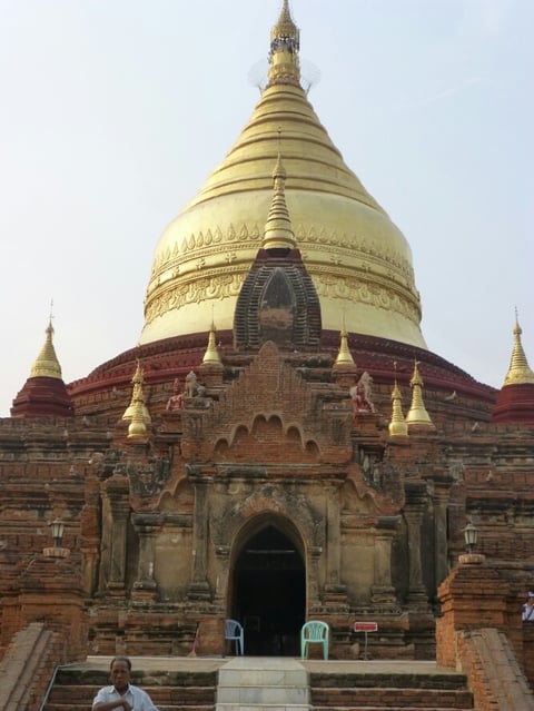 Die größte Stupa ist die Dhammayangyi. Auch hier kann man, wie in den meisten Stupa, innerhalb, auf einem Kreuzgang, in die Runde gehen. In jeder Himmelsrichtung ist, gegenüber einem Eingang, ein großer Buddha positioniert.
